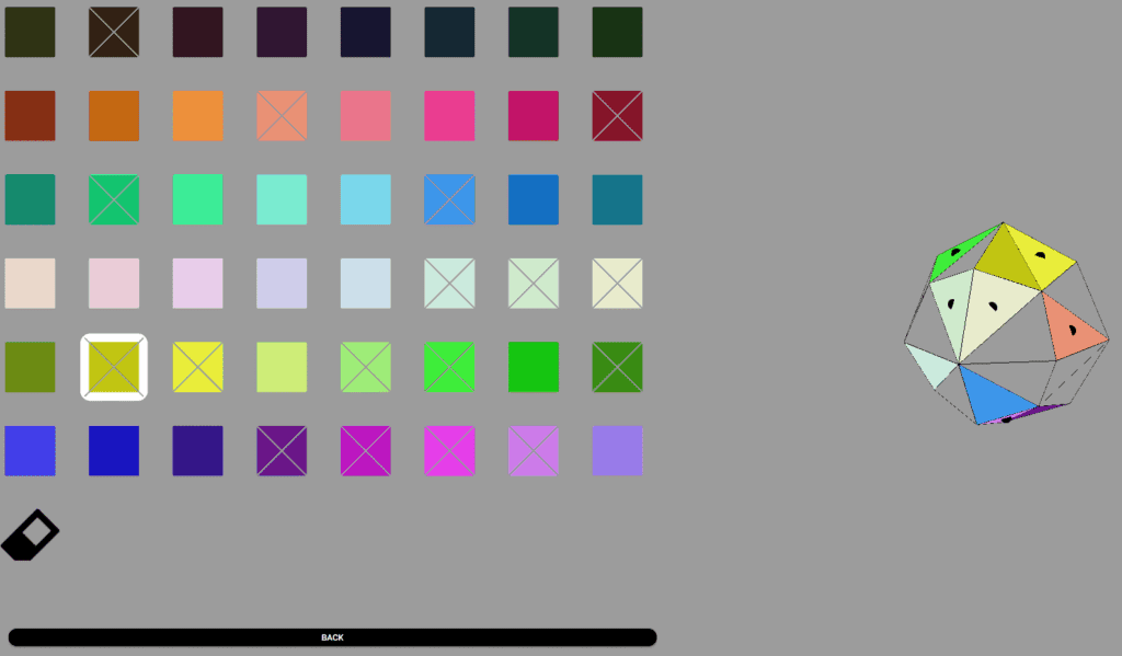 Juego para mejorar la capacidad de discriminación cromática y comprender la distribución espacial de los colores según sus variables perceptivas tono, valor y saturación. El usuario debe resolver un puzle tridimensional colocando adecuadamente los parches de colores sobre las caras de distintos cuerpos geométricos.